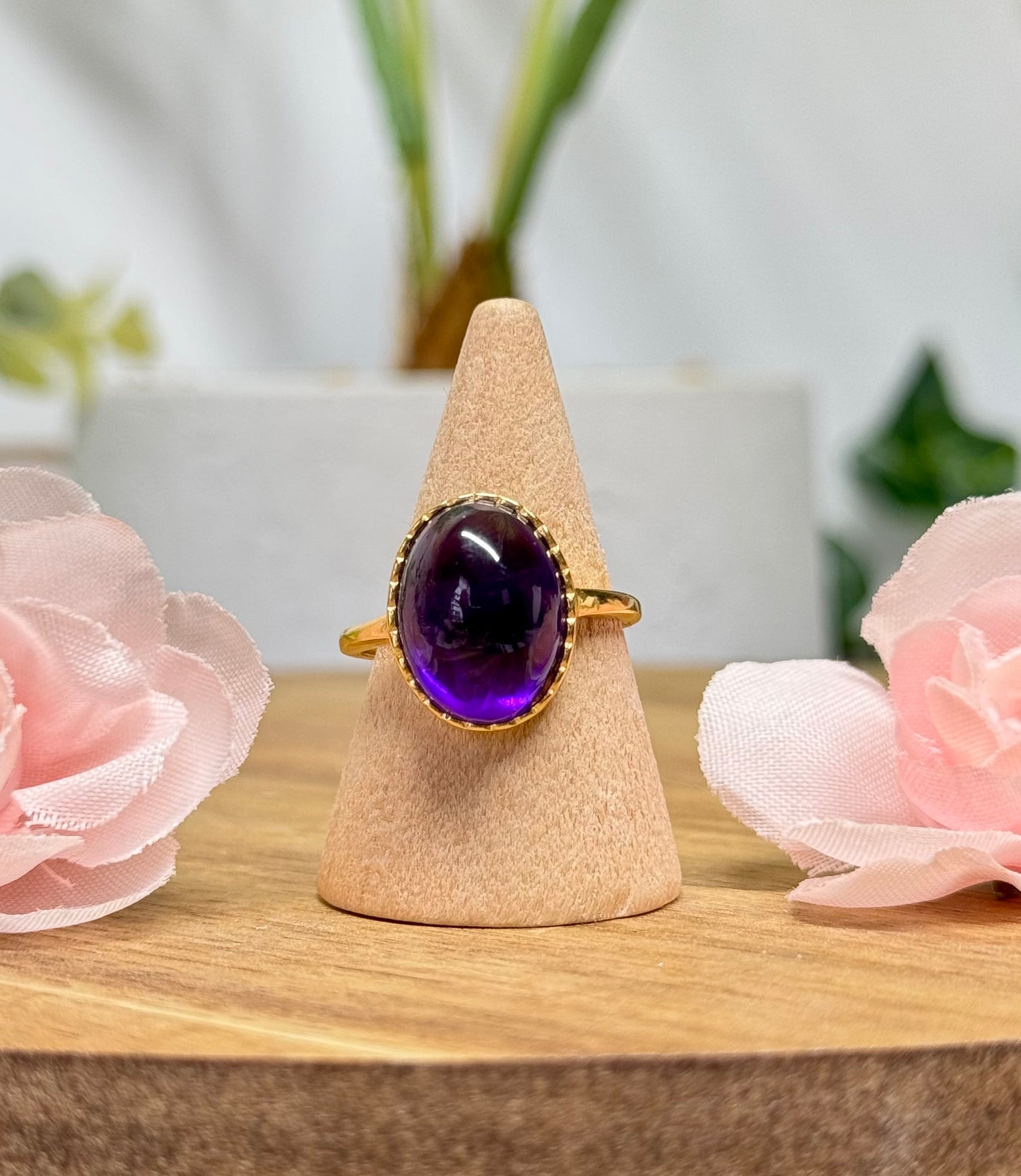 High quality amethyst statement ring. 14k gold plated s925 sterling silver and adjustable to fit size 5-10