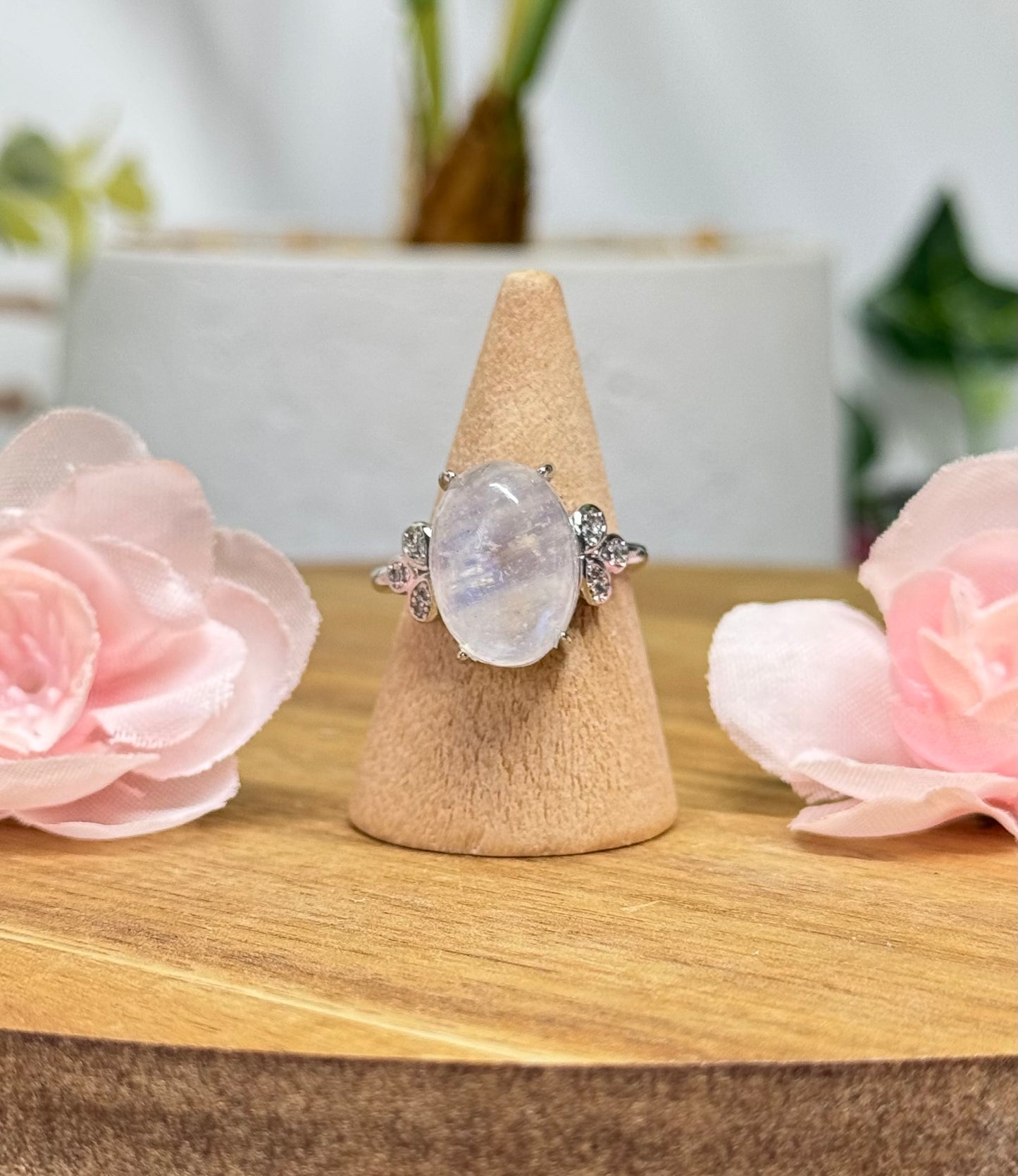 Moonstone statement ring. Silver plated copper and adjustable to fit size 5-10