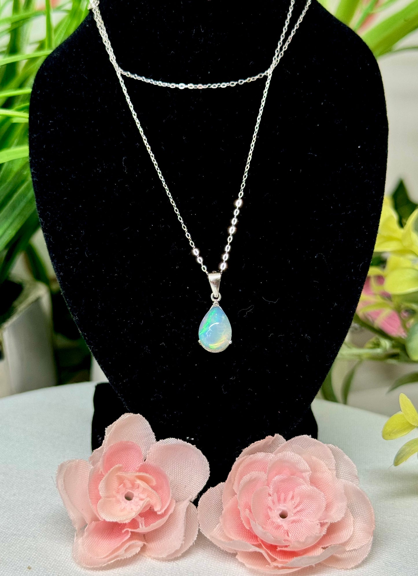 Opal teardrop necklace with gorgeous flash! S925 sterling silver with 18” chain. See attached video