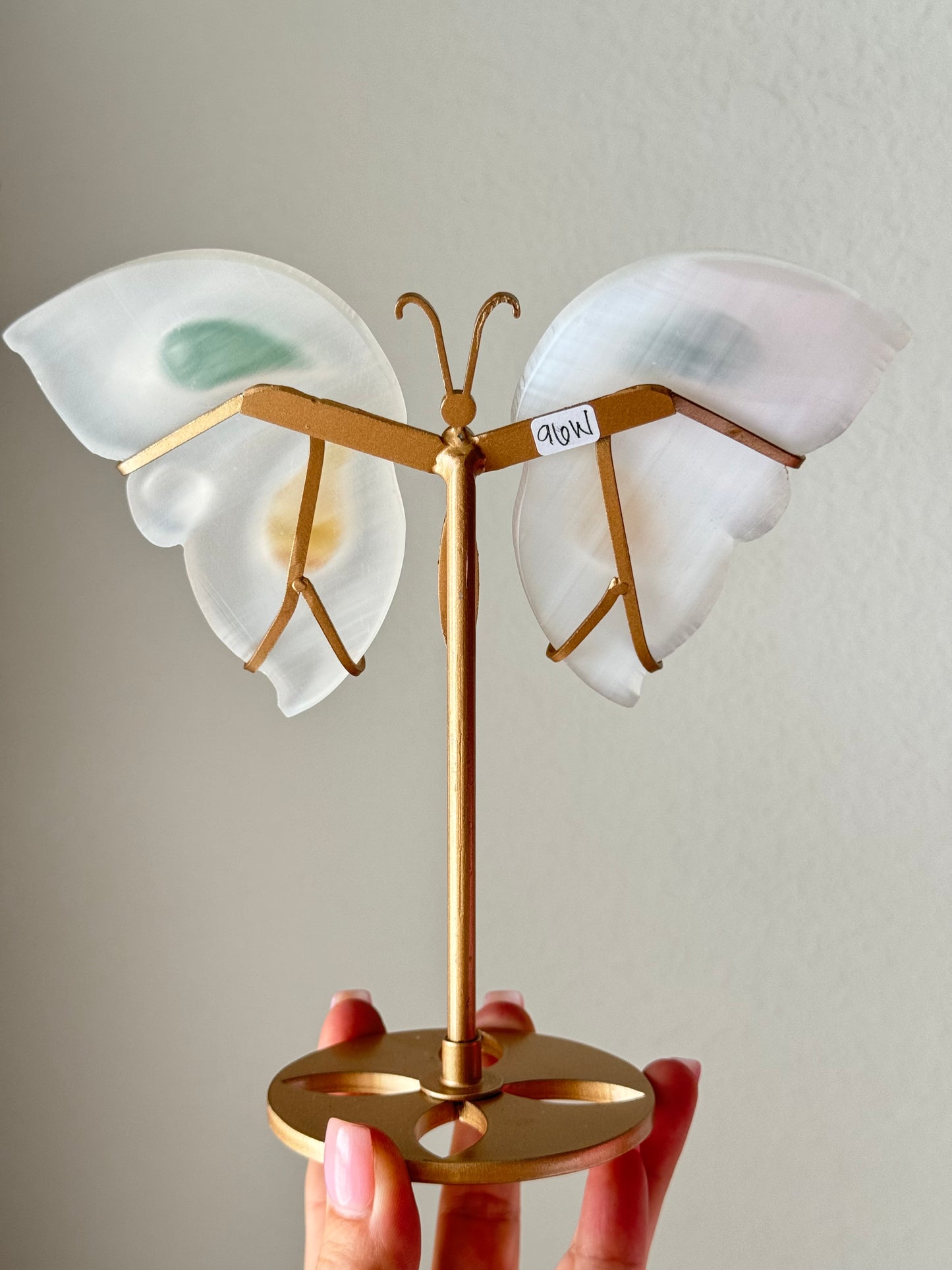 Selenite/satin spar butterfly wing set *includes gold stand*