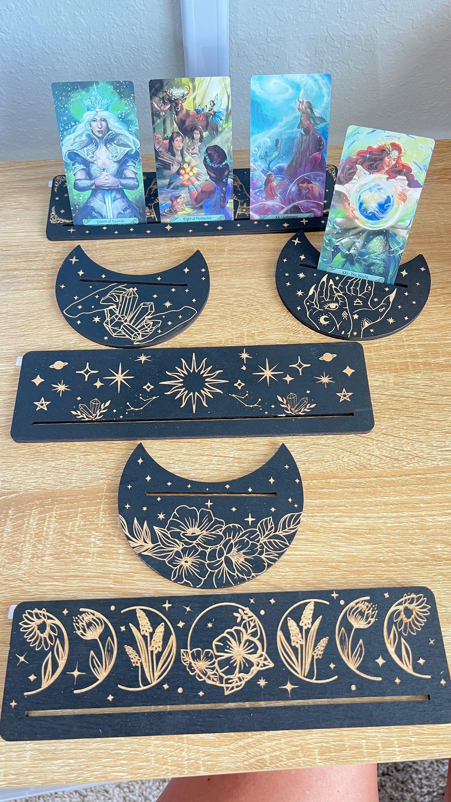 Wooden tarot card holder set