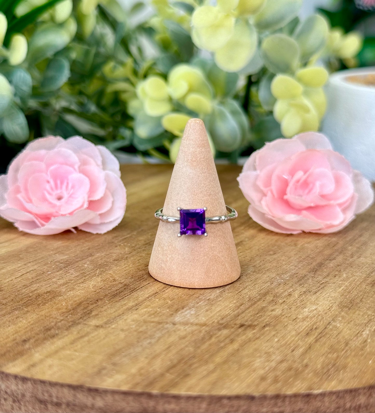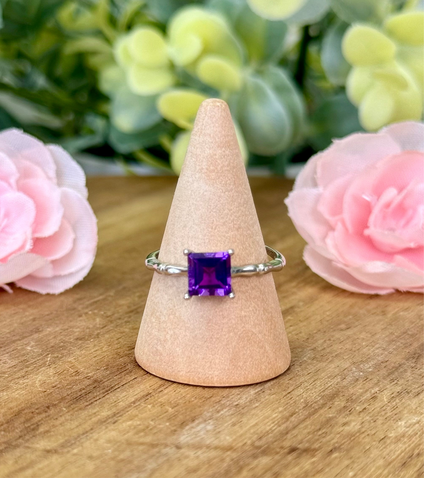 Princess cut amethyst ring. S925 sterling silver and adjustable