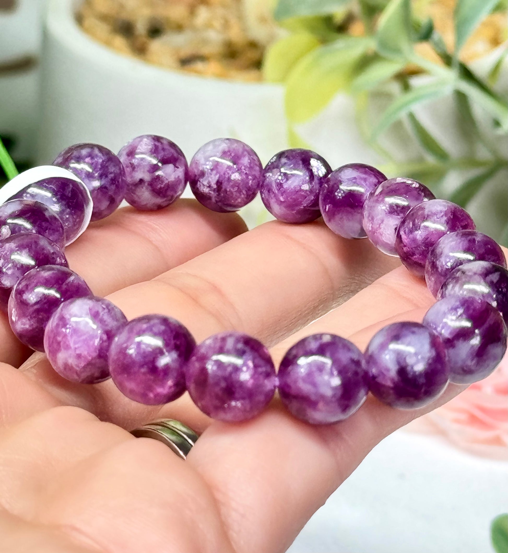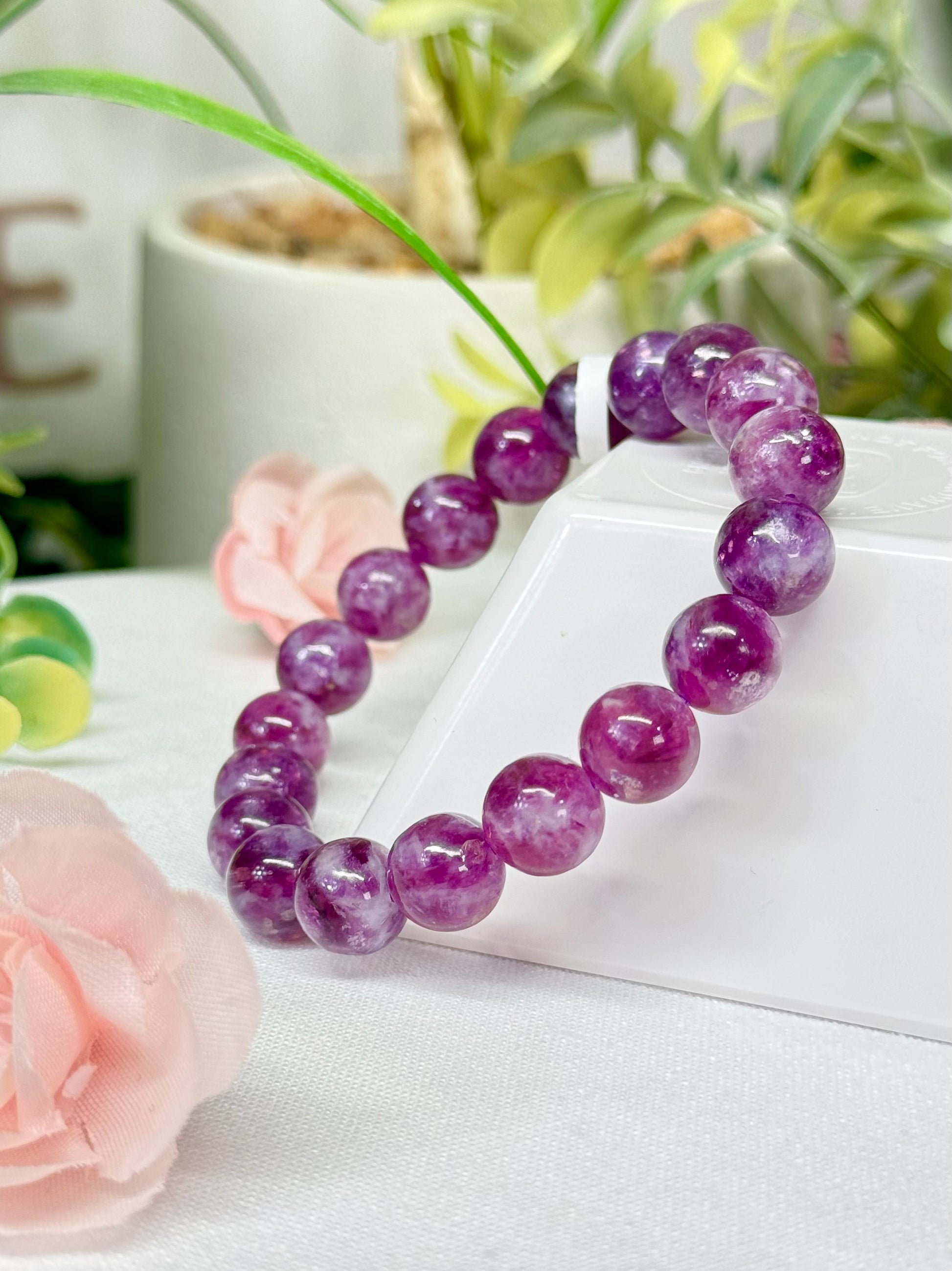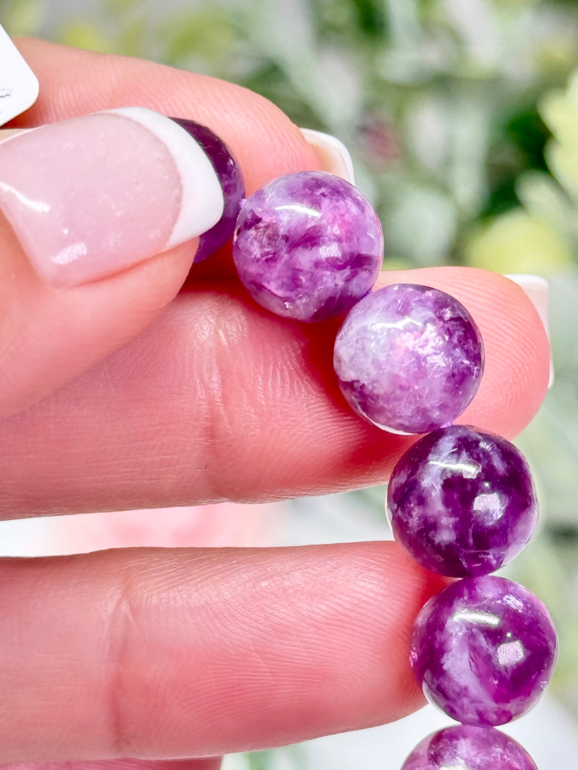 Purple Muscovite bracelet. 10.2 mm beads and fits a size 7” wrist. See photos for details.